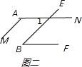 如图二,∵AM∥BE,∴∠A+∠1=180°;∵AN∥BF,∴∠1=∠B;∴∠A+∠B=180°.