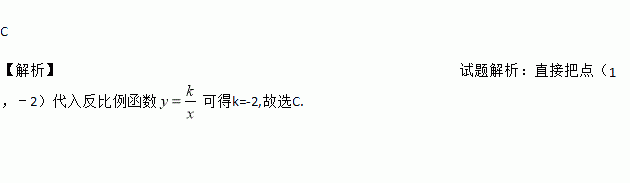 已知反比例函数y=的图象过点A(1,﹣2),则k的值为( )