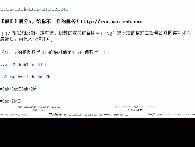 (2)求代数式3a(b+c)﹣b(3a﹣2b)的值.