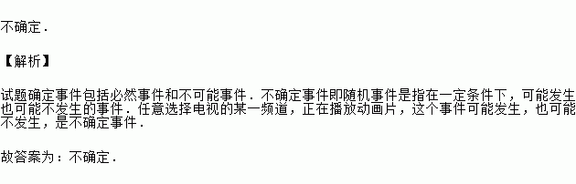 任意选择电视的某一频道,正在播放动画片,这个事件是 事件.(填“必然”“不可能”或“不确定”)