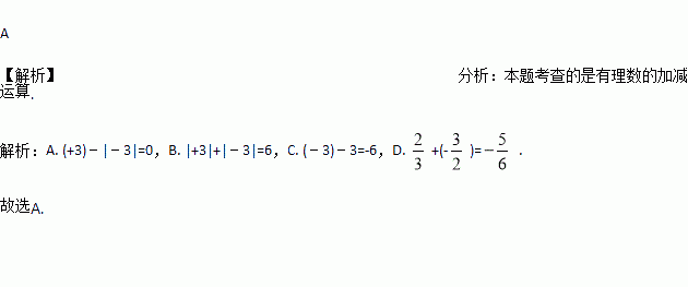 A. (+3)﹣|﹣3| B. |+3|+|﹣3| C. (﹣3)﹣3 D. +(-)