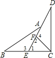 分析:把CE绕C点顺时针旋转交DE于F,根据旋转的性质得CE=CF,有等腰三角形性质得∠1=∠2,根据等角的补角相等得∠4=∠3,由点E是BC的中点得到BE=CE=CF,然后根据“AAS”可判断△BAE≌△CDF,根据全等的性质即可得到AB=CD.
