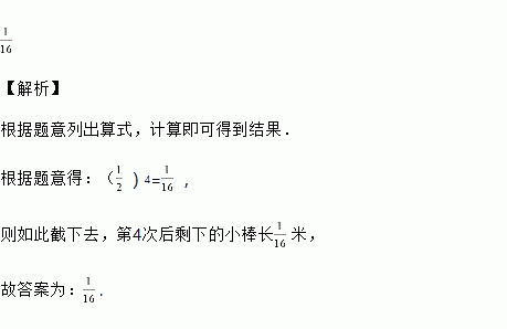 1米长的小棒,第1次截去一半,第二次截去剩下的一半,如此截下去,第4次后剩下的小棒长________米.