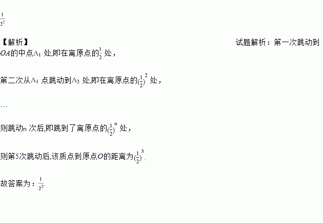 一质点P从距原点1个单位的A点处向原点方向跳动,第一次跳动到OA的中点A1处,第二次从A1点跳动到OA1的中点A2处,第三次从A2点跳动到OA2的中点A3处,如此不断跳动下去,则第5次跳动后,该质点到原点O的距离为__.