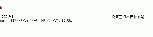 长度为3cm、4cm两根木棒,与它们首尾相接能构成三角形的第三根木棒长度是( )