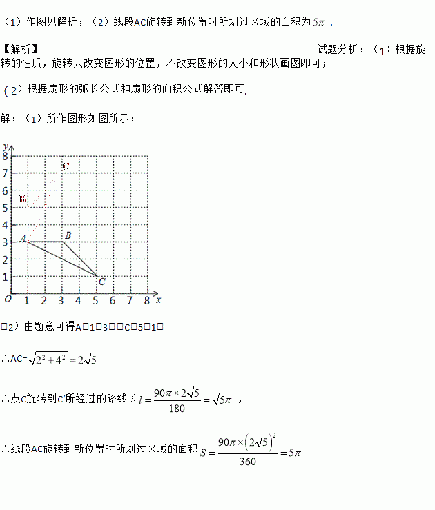 £¨2£©ÔÚ£¨1£©µÄÌõ¼þÏ£¬ÇóµãCÐýתµ½µãC¡äËù¾¹ýµÄ·Ïß³¤¼°Ïß¶ÎACÐýתµ½ÐÂλÖÃʱËù»®¹ýÇøÓòµÄÃæ»ý.