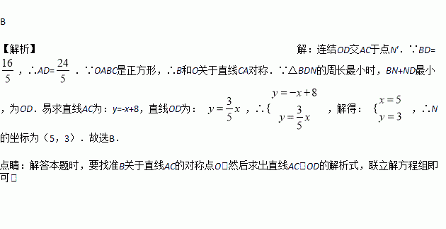 ,N是AC上的一动点,当△BDN的周长最小时,点N的 坐标为( )