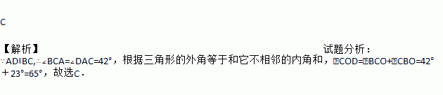□ABCD中,对角线AC与BD交于点O,∠DAC=42º,∠CBD=23º,则∠COD是( ).