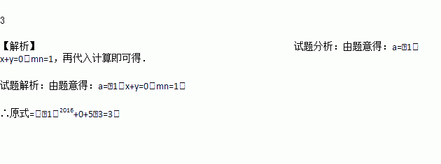 已知a是最大的负整数,x、y互为相反数,m、n互为倒数,求的值。