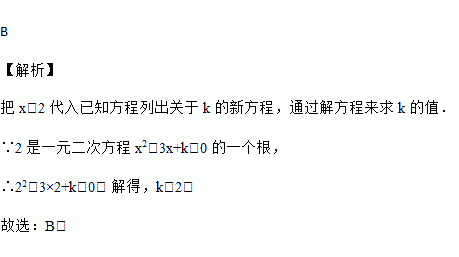 如果2是方程x2﹣3x+k=0的一个根,则常数k的值为( )