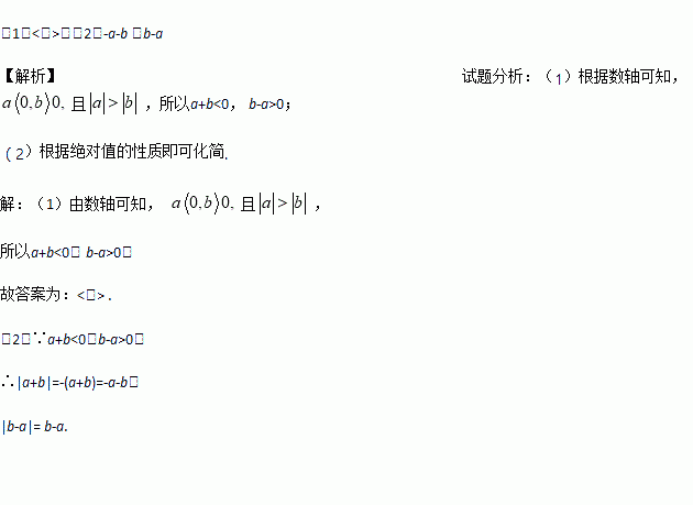 (1)(用“>”或“=”或“<”填空): a+b 0, b-a 0