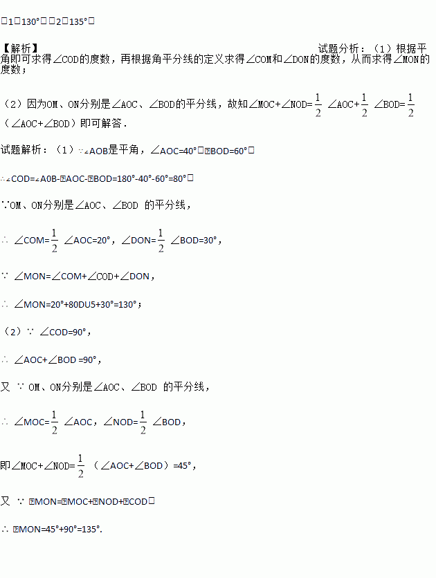 (1)知∠AOC=40°,∠BOD=60°,求∠MON的度数;
