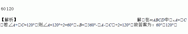 在□ABCD中,若∠A+∠C=120°,则∠A=________,∠B=__________.