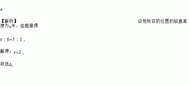 一斜坡的坡度为1∶3,如果某人站的位置的水平宽度为6米,则他所在的位置的铅直高度为( )