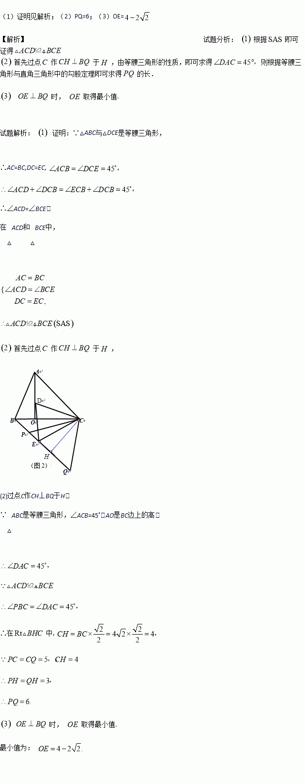 , ¡ÏACB=45?£¬AOÊÇBC±ßÉϵĸߣ¬DΪÏß¶ÎAOÉÏÒ»¶¯µã£¬ÒÔCDΪһ±ßÔÚCDÏ·½×÷µÈÑü¡÷CDE,ʹCD=CEÇÒ¡ÏDCE=45?£¬Á¬½áBE.