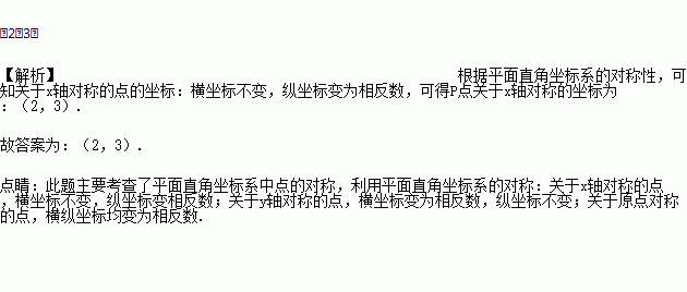 点P(2,﹣3)关于x轴的对称点坐标为_____.