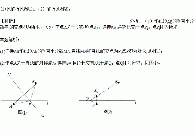 (1)在直线上求一点P,使PA=PB; (保留尺规作图痕迹)