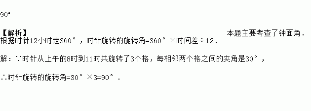 时钟上的时针不停地旋转,从上午8时到上午11时,时针旋转的旋转角是_____________.