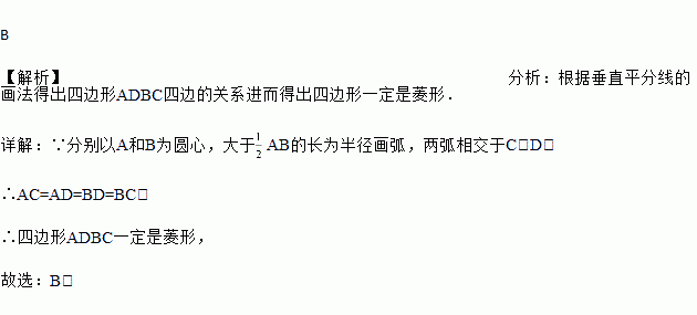 的长为半径画弧,两弧相交于C、D,作直线CD,则直线CD即为所求.根据他的作图方法可知四边形ADBC一定是( )