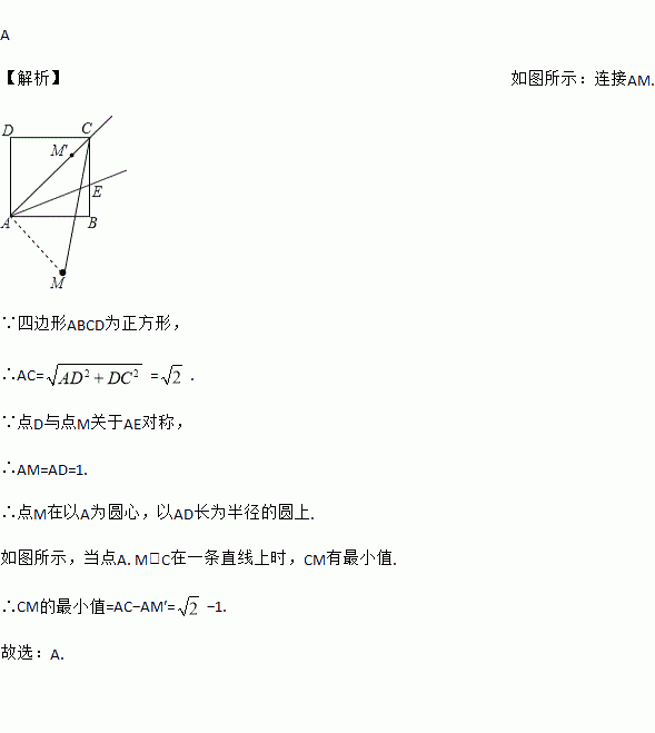)得到射线AE,点M是点D关于射线AE的对称点,则线段CM长度的最小值为( )