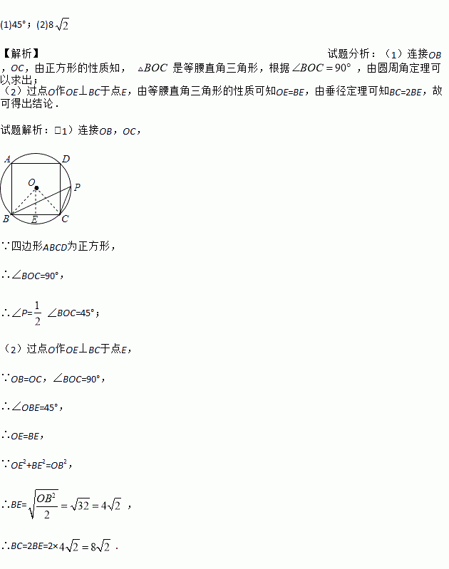 (2)若⊙O的半径为8,求正方形ABCD的边长.