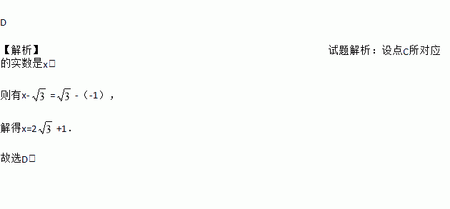 在如图所示的数轴上,点B与点C关于点A对称,A, B两点对应的实数分别是和-1,则点C所对应的实数是