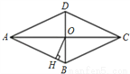 如图,菱形ABCD的对角线AC、BD相交于点O,且AC=8,BD=6,过点O作OH丄AB,垂足为H,则点0到边AB的距离OH=_____.