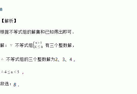 若不等式组有三个整数解,则a的取值范围是