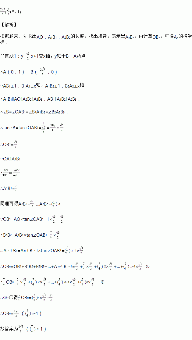 如图,在平面直角坐标系中,点A,,,都在直线1:上,点B,,,都在x轴上,且,轴,,轴,则的横坐标为______用含有n的代数式表示.