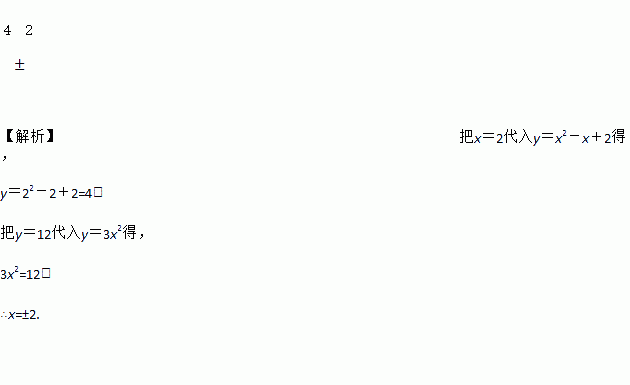 已知函数y=x2-x+2,当x=2时,函数值y=_____;已知函数y=3x2,当x=______时,函数值y=12.