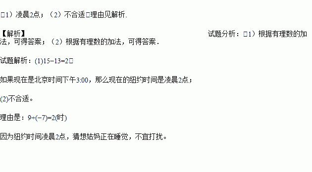 (1)如果现在是北京时间下午3:00,那么现在的纽约时间是多少?