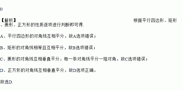 A. 平行四边形的对角线互相垂直平分 B. 矩形的对角线互相垂直平分