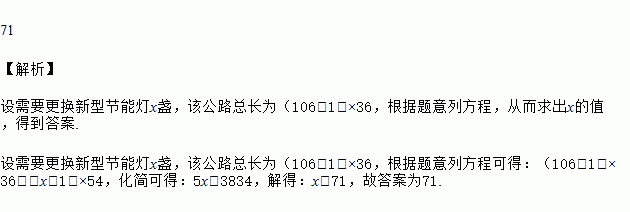 已知某公路一侧原有路灯106盏,相邻两盏路灯之间的距离为36米,为节约用电,现计划全部更换为新型节能灯,且相邻两盏路灯之间的距离变为54米,则需要更换节能灯______盏.