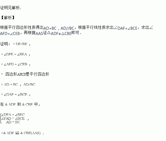 如图,E、F是?ABCD对角线AC上的两点,且求证:≌;