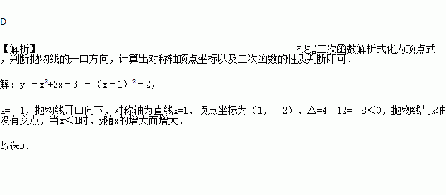 已知抛物线y=﹣x2+2x﹣3,下列判断正确的是( )