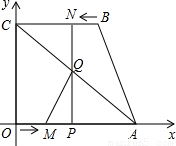【答案】分析:(1)(BC÷点N的运动速度)与(OA÷点M的运动速度)可知点M能到达终点.
