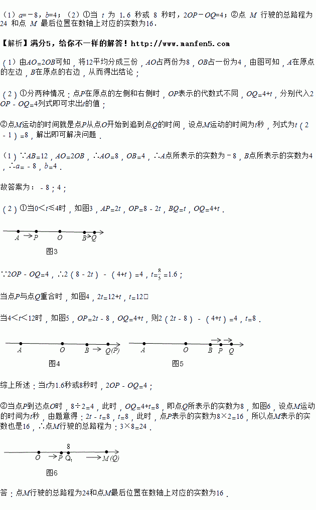 ②当点 P 到达点 O 时,动点 M 从点 O 出发,以每秒 3 个单位长度的速度也向右运动,当点 M 追上点 Q 后立即返回,以同样的速度向点 P 运动,遇到点 P 后再立即返回,以同样的速度向点 Q 运动,如此往返,直到点 P,Q 停止时,点 M 也停止运动,求在此过程中点 M 行驶的总路程,并直接写出点 M 最后位置在数轴上所对应的有理数.