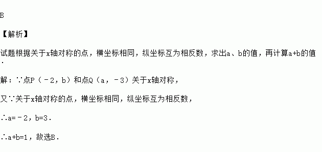 如果点P(﹣2,b)和点Q(a,﹣3)关于x轴对称,则a+b的值是( )