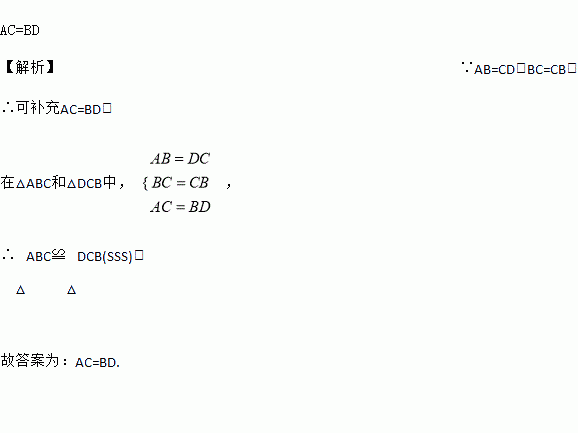 如图,AB=DC,请补充一个条件:_________________使△ABC≌△DCB(填其中一种即可)