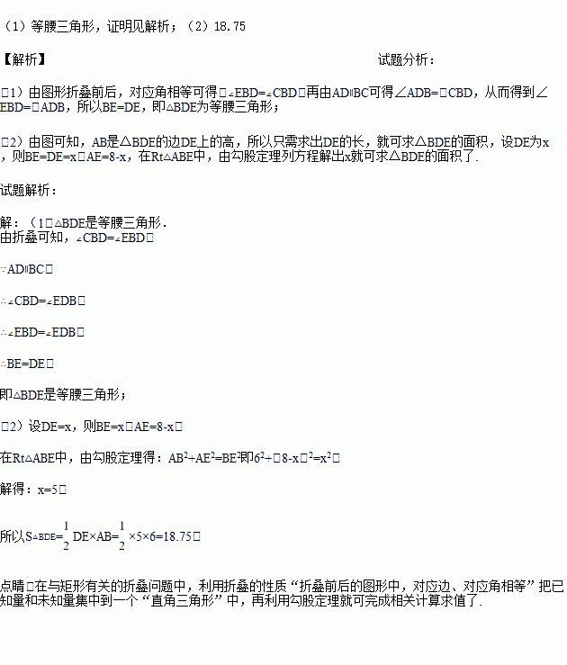 如图,将长方形ABCD沿着对角线BD折叠,使点C落在处,交AD于点E.