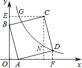 10.分析 作CE⊥y轴于点E,交双曲线于点G.作DF⊥x轴于点F,易证△OAB≌△FDA≌△BEC,求得A、B的坐标,根据全等三角形的性质可以求得C、D的坐标,从而利用待定系数法求得反比例函数的解析式,进而求得N的坐标,则a的值即可求解.