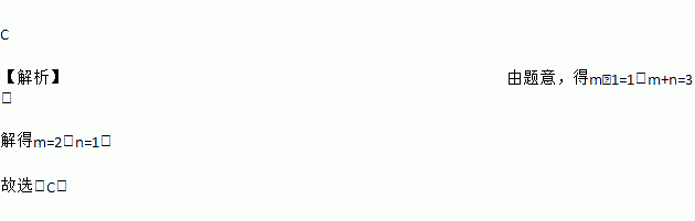 C 【解析】由题意,得m﹣1=1,m+n=3. 解得m=2,n=1, 故选:C.