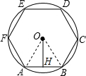 分析:首先由题意画出图形,易证得△OAB是等边三角形,又由正六边形的边心距为