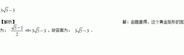 我们知道古希腊时期的巴台农神庙的正面是一个黄金矩形.若已知黄金矩形的长等于6,则这个黄金矩形的宽约等于_______.(结果保留根号)