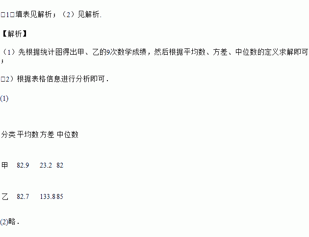如图是甲、乙二人在八年级下学期的9次数学考试成绩: