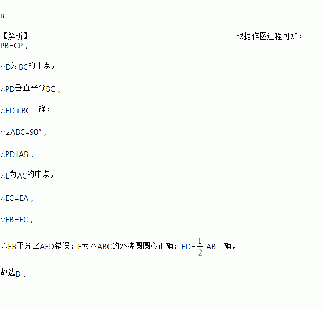 BC长为半径作弧,两弧交于点P,作直线PD交AC于点E,连接BE,则下列结论中不正确的是( )