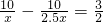 当x=4时,2.5x=10.
