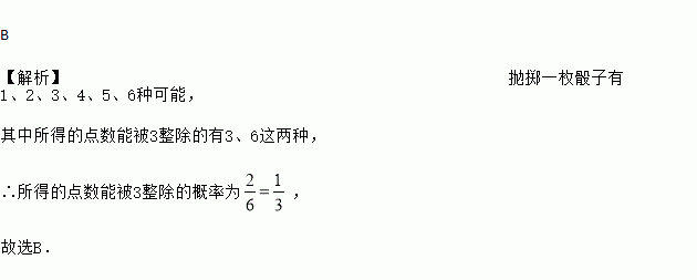 抛掷一枚均匀的骰子,所得的点数能被3整除的概率为( )