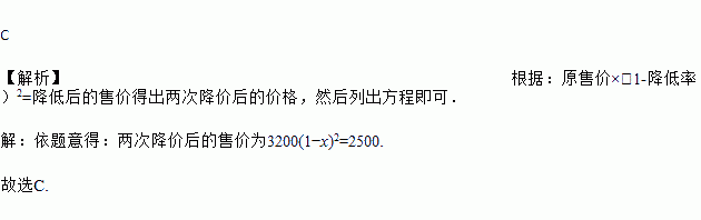 C. 3200(1-x)2=2500 D. 3200(1-2x)=2500