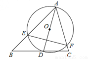 如图,△ABC中,∠BAC=60°,∠ABC=45°,AB=,D是线段BC上的一个动点,以AD为直径画⊙O分别交AB、AC于E、F,连接EF,则线段EF长度的最小值为 .